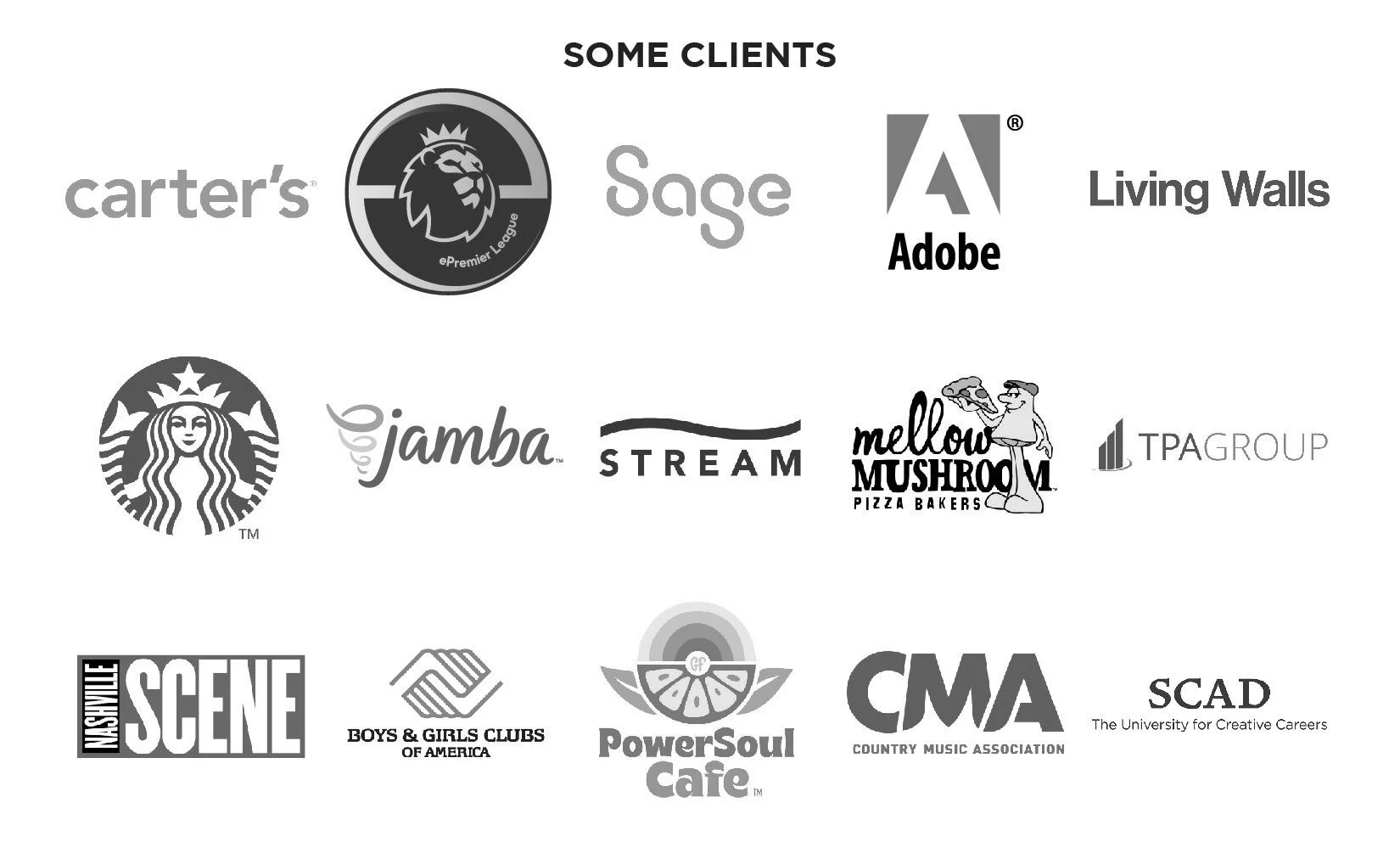 His portfolio includes clients such as Carters, Adobe, Premier League, EA Sports, Sage, TPA Group, GBC Bank and Jamba Juice.